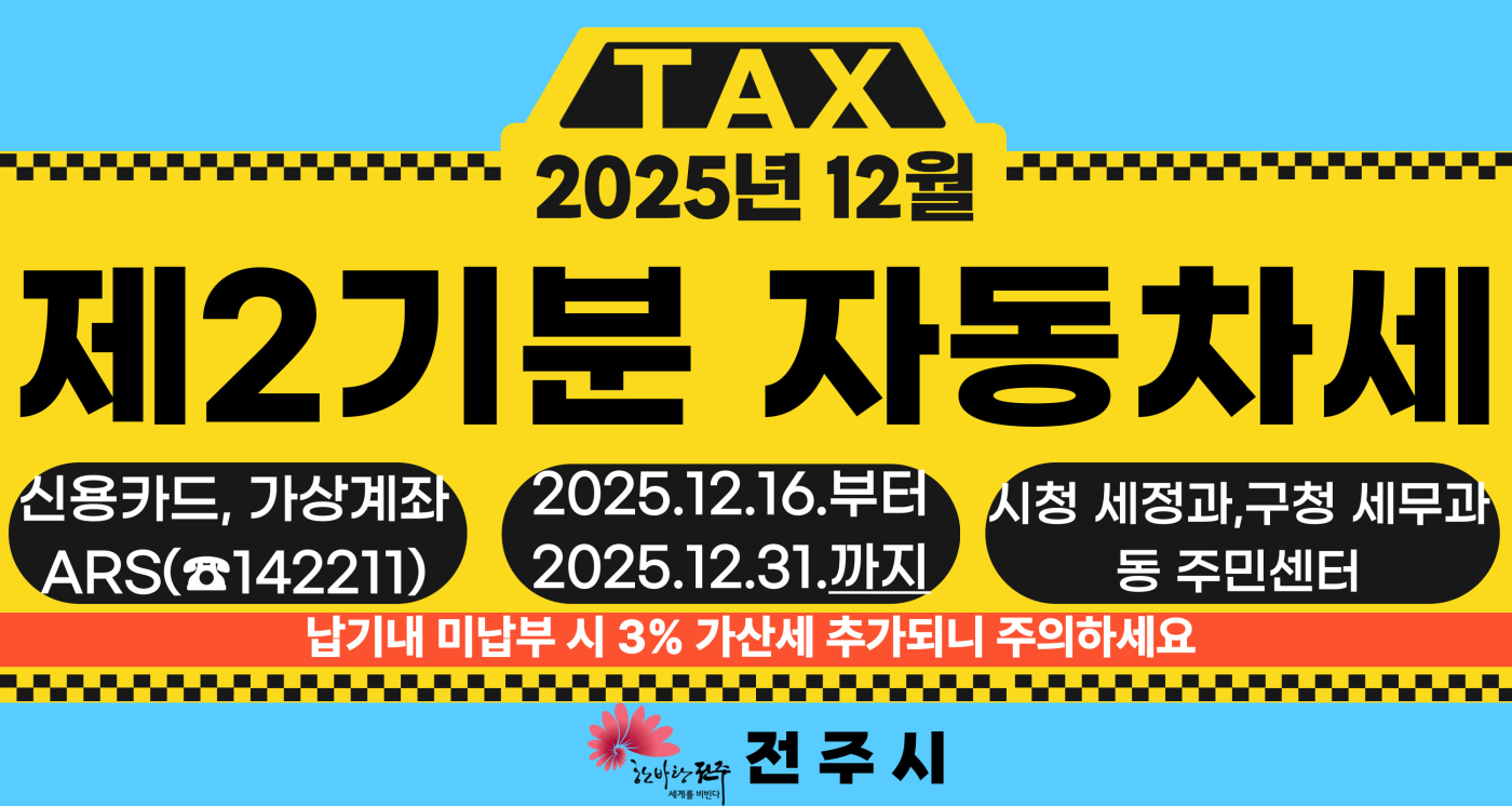12월은 제2기분 자동차세 납부의 달로 납부기간은 2025년 12월 16일부터 12월 31일까지입니다.