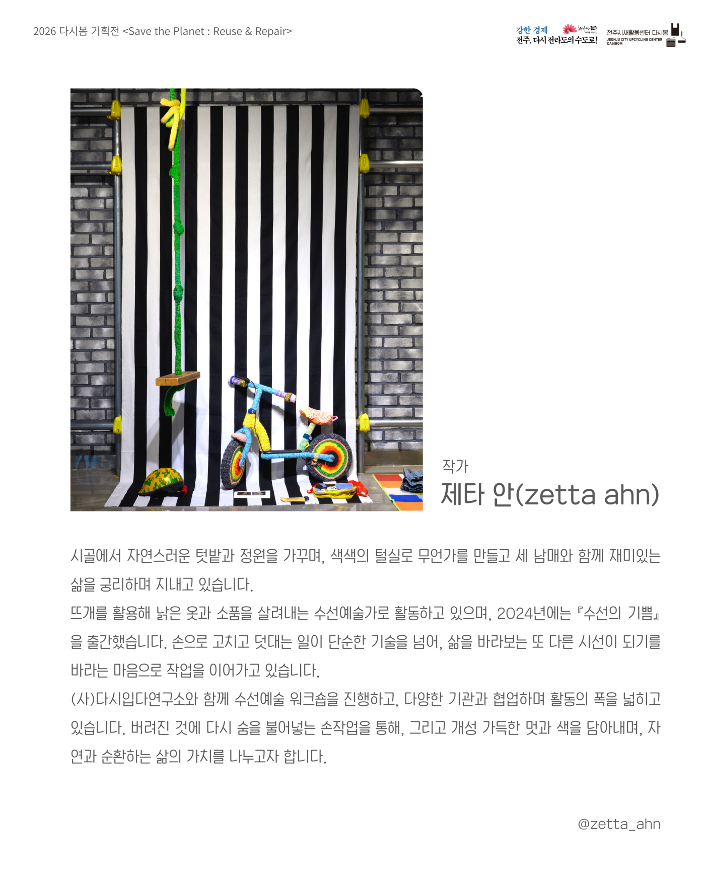 [전시] [전주시새활용센터 다시봄 기획전] 제타 안 「Save the Planet : Reuse & Repair」