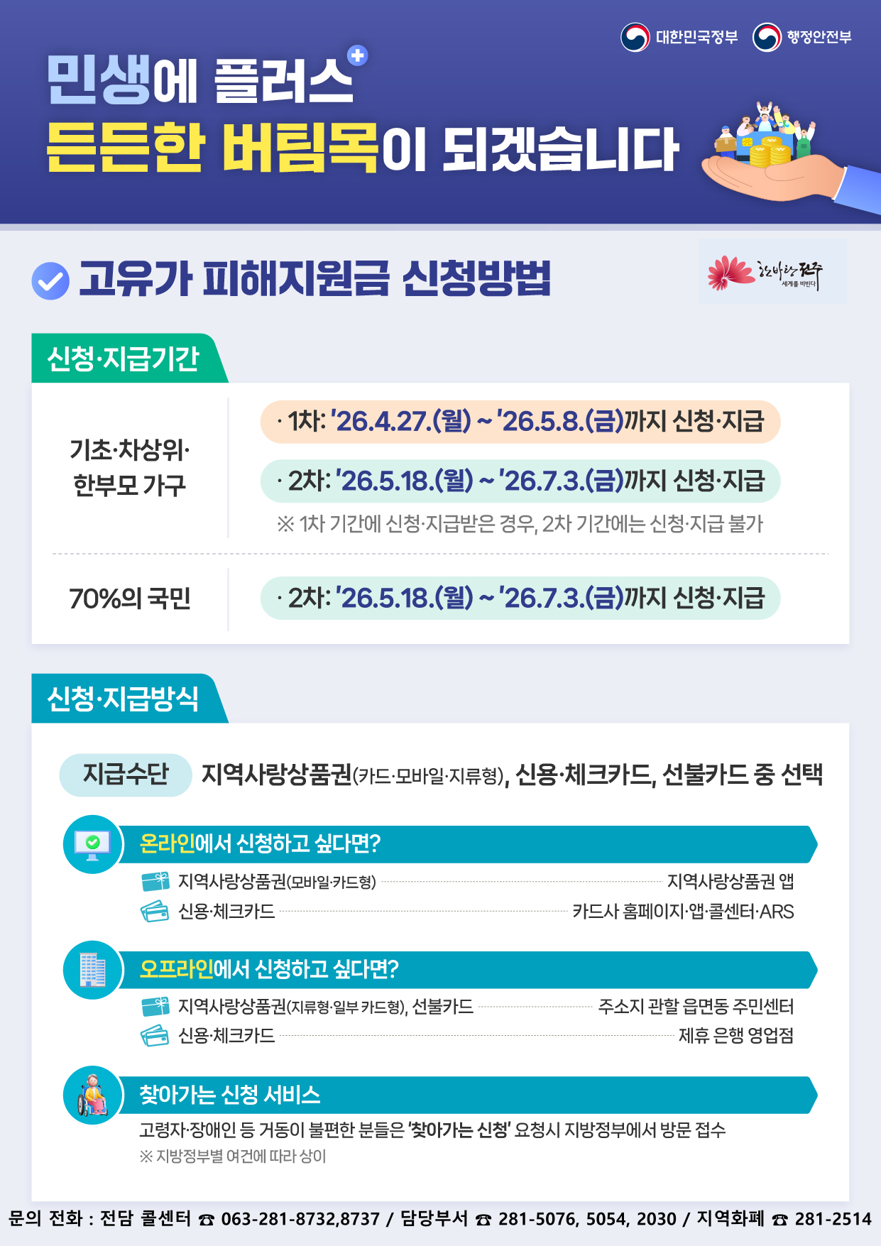 - (전담 콜센터) ☎ 063-281-8732, 8737