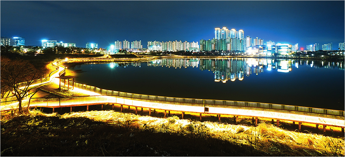 특히 해 질 녘 보랏빛 하늘과 함께 어우러지는 야경이 아름답다. 그 무렵 걷는 1.16km 길이의 수상 데크는 가족과 연인 누구나 부담 없이 함께 즐길 수 있는 산책 코스다.
