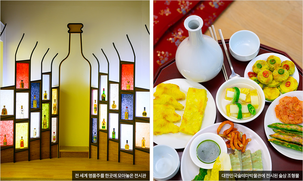 경각산 자락에 술독 형상으로 빚어진 대한민국술테마박물관은 술의 백과사전이다. 4층에 자리한 전시관인 ‘술꽃피는 역사관’과 ‘상설전시관’에선 세계 술 문화를 주제별로 보여 줘 애주가들의 마음을 사로잡는다. 우리 술의 굴곡진 변천사 앞에선 숙연해지다가도 어려웠던 시절에 서민들이 삶의 애환을 술로 풀었던 모습을 재현한 자리에서는 애틋해지니 기성세대라면 추억에 잠길 것이다. 홍보관에서 전통주를 구매할 수 있다. 10월 중에 3일간 야외에서 야간 캠핑 행사도 열린다니 가족과 함께 찾으면 좋겠다.